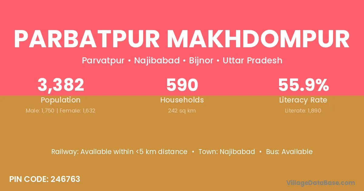 Parbatpur Makhdompur village is located in the Najibabad Tehsil of the Bijnor district in Uttar Pradesh .