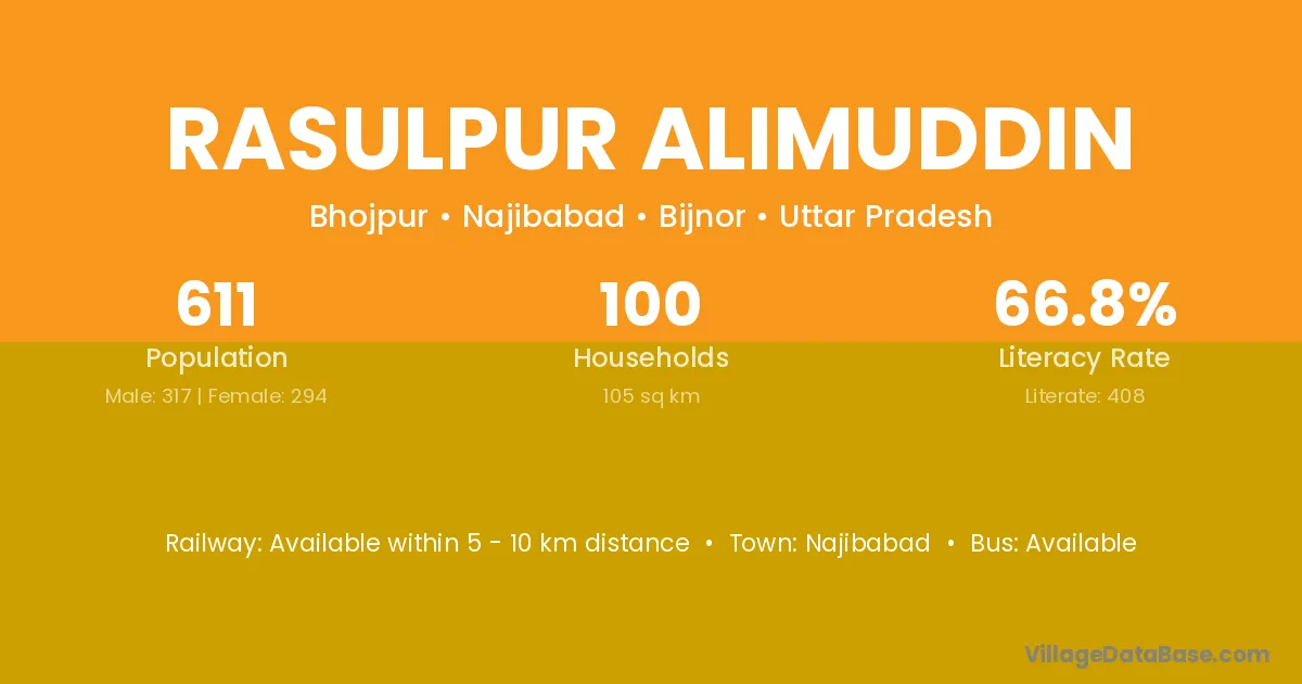 Najibabad is the nearest town to Rasulpur Alimuddin village for major economic activities