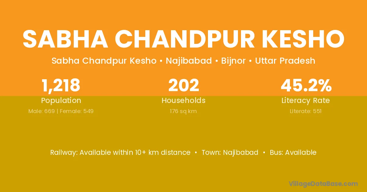Sabha Chandpur Kesho village has a total population of 1,218 people, of which 669 are males and 549 are females.
