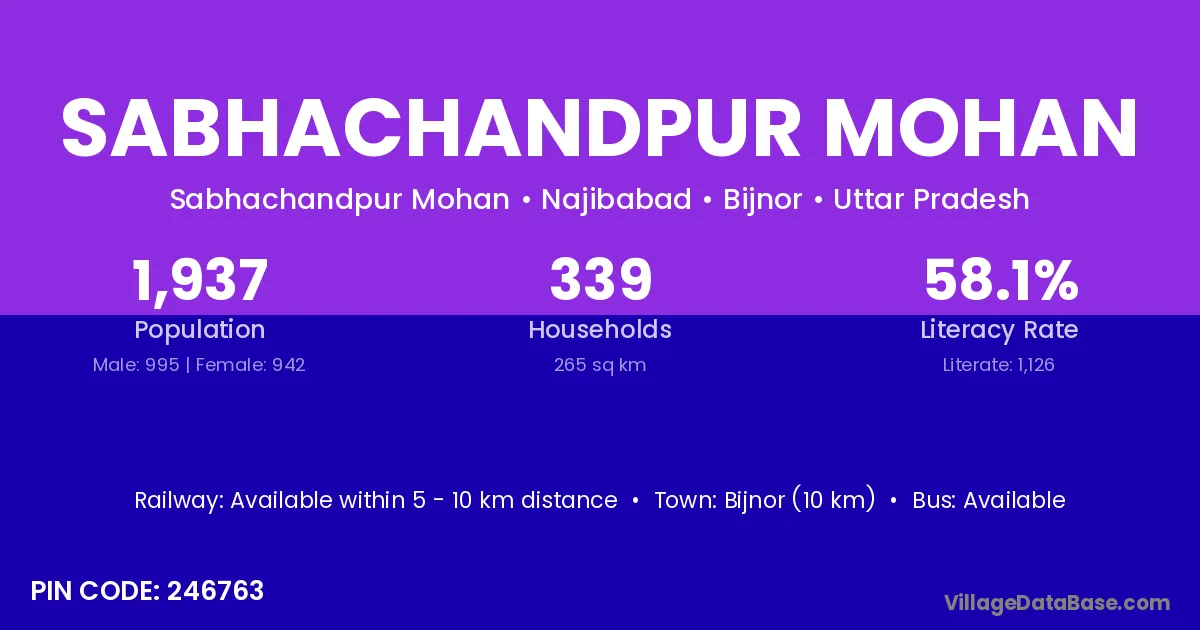 Bijnor (10 km) is the nearest town to Sabhachandpur Mohan village for major economic activities and is located approximately 10 km away.