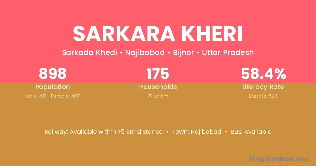 Sarkara Kheri village has a total population of 898 people, of which 451 are males and 447 are females.