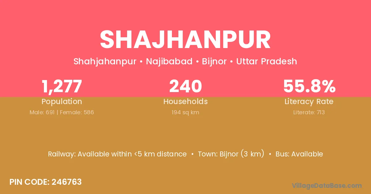Bijnor (3 km) is the nearest town to Shajhanpur village for major economic activities and is located approximately 3 km away.