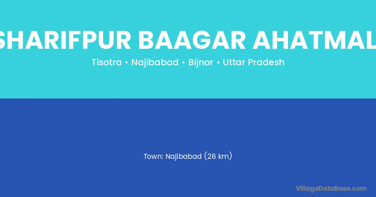 Najibabad (26 km) is the nearest town to Sharifpur Baagar Ahatmali village for major economic activities and is located approximately 26 km away.
