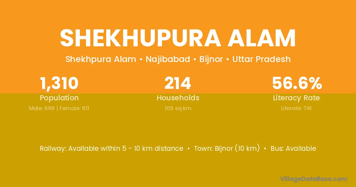Bijnor (10 km) is the nearest town to Shekhupura Alam village for major economic activities and is located approximately 10 km away.