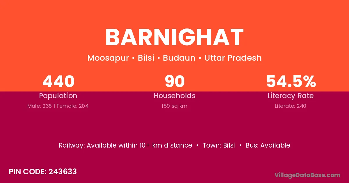 Barnighat village has a total population of 440 people, of which 236 are males and 204 are females.