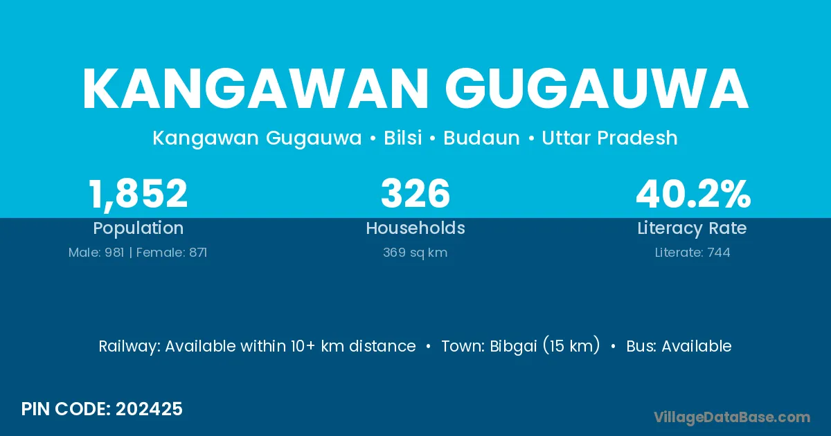 Kangawan Gugauwa village has a total population of 1,852 people, of which 981 are males and 871 are females.