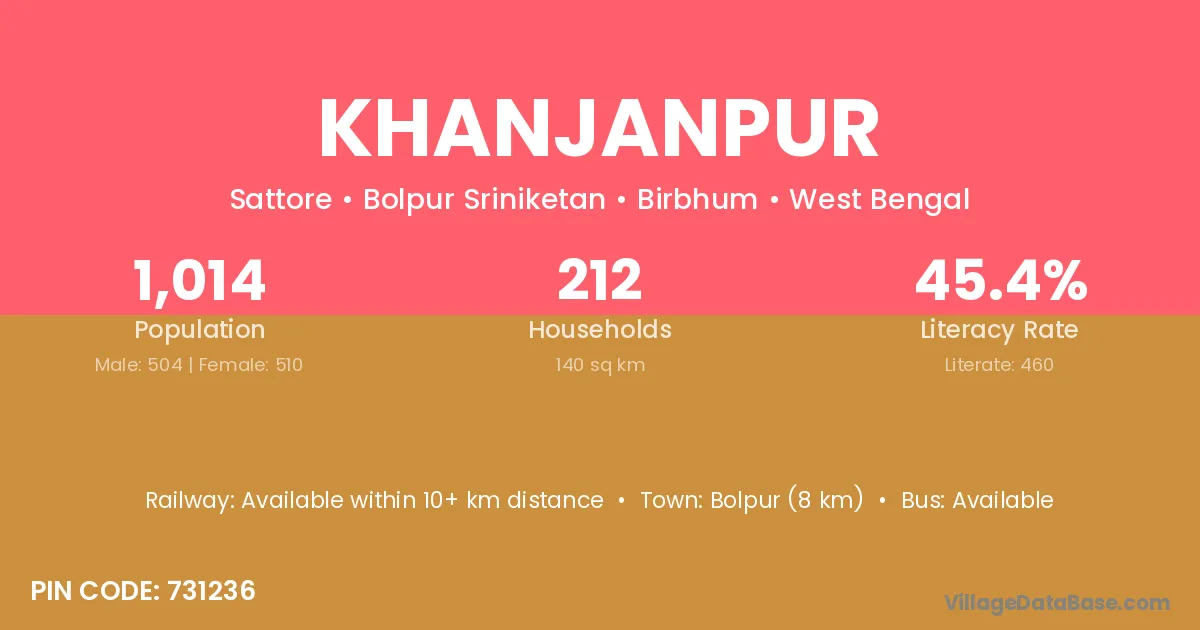 The literacy rate of Khanjanpur village is 56.97%. Male literacy stands at 70.95% and female literacy at 42.21%.