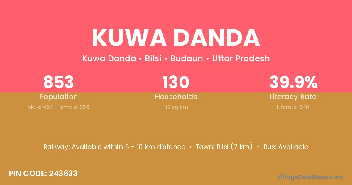 Kuwa Danda village has a total population of 853 people, of which 457 are males and 396 are females.