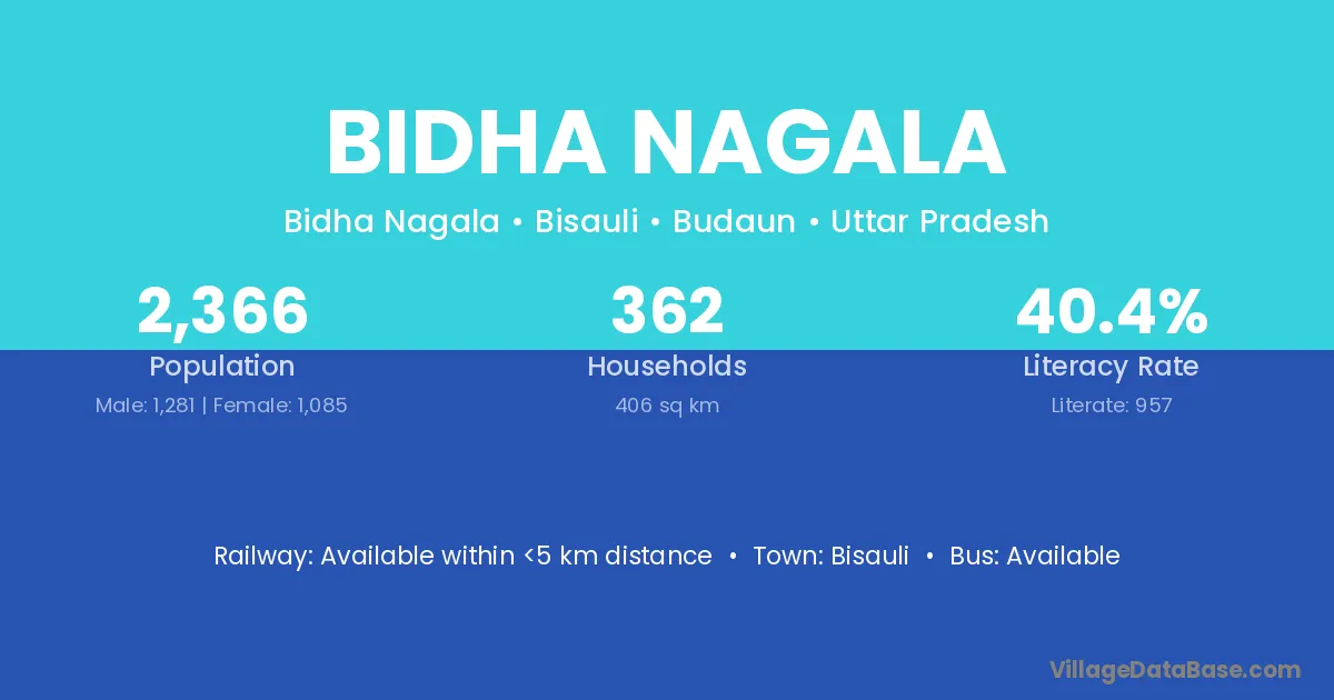Bisauli is the nearest town to Bidha Nagala village for major economic activities