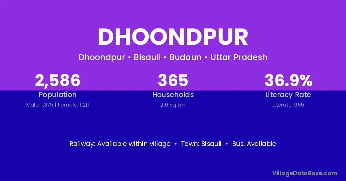 Bisauli is the nearest town to Dhoondpur village for major economic activities
