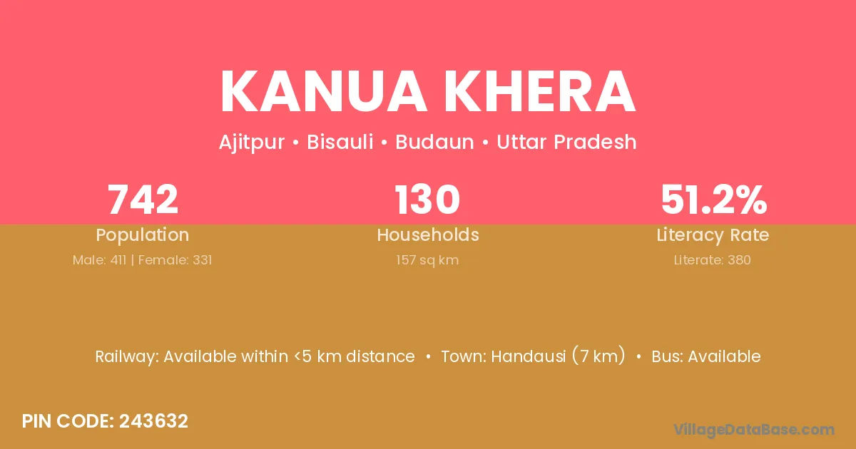 Handausi (7 km) is the nearest town to Kanua Khera village for major economic activities and is located approximately 7 km away.