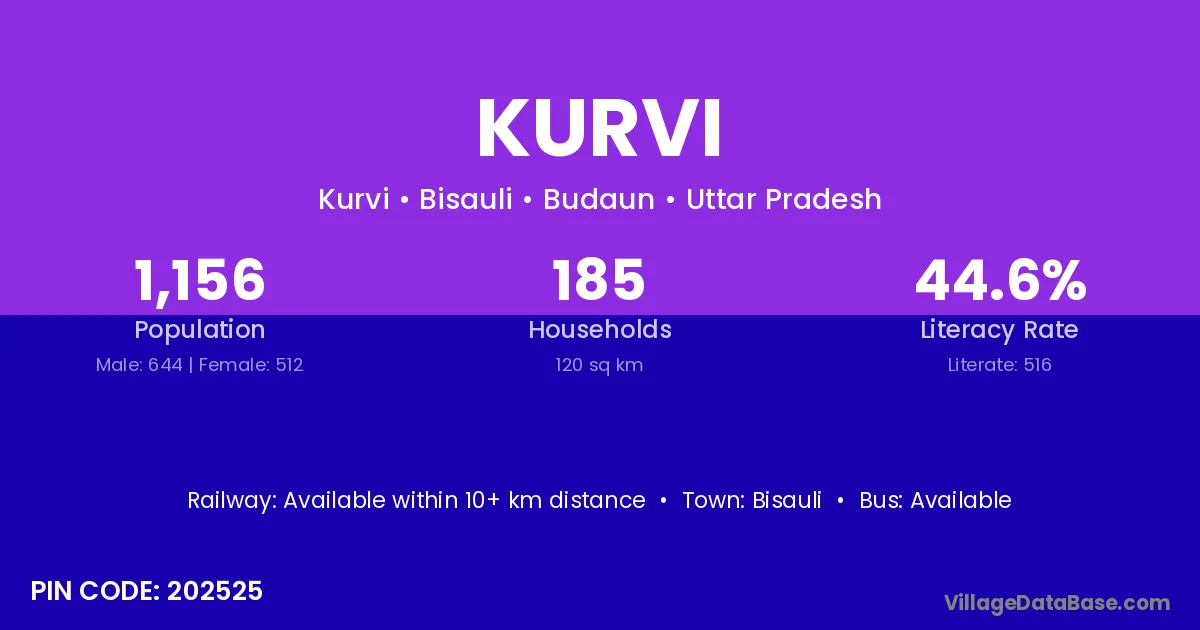Bisauli is the nearest town to Kurvi village for major economic activities
