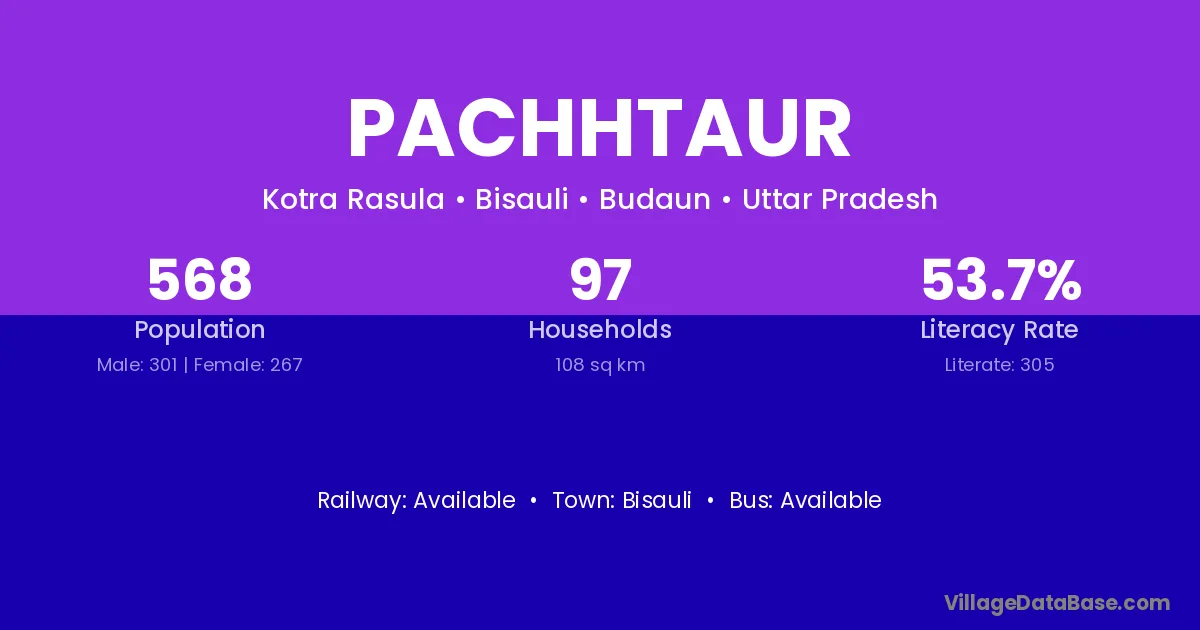 Bisauli is the nearest town to Pachhtaur village for major economic activities