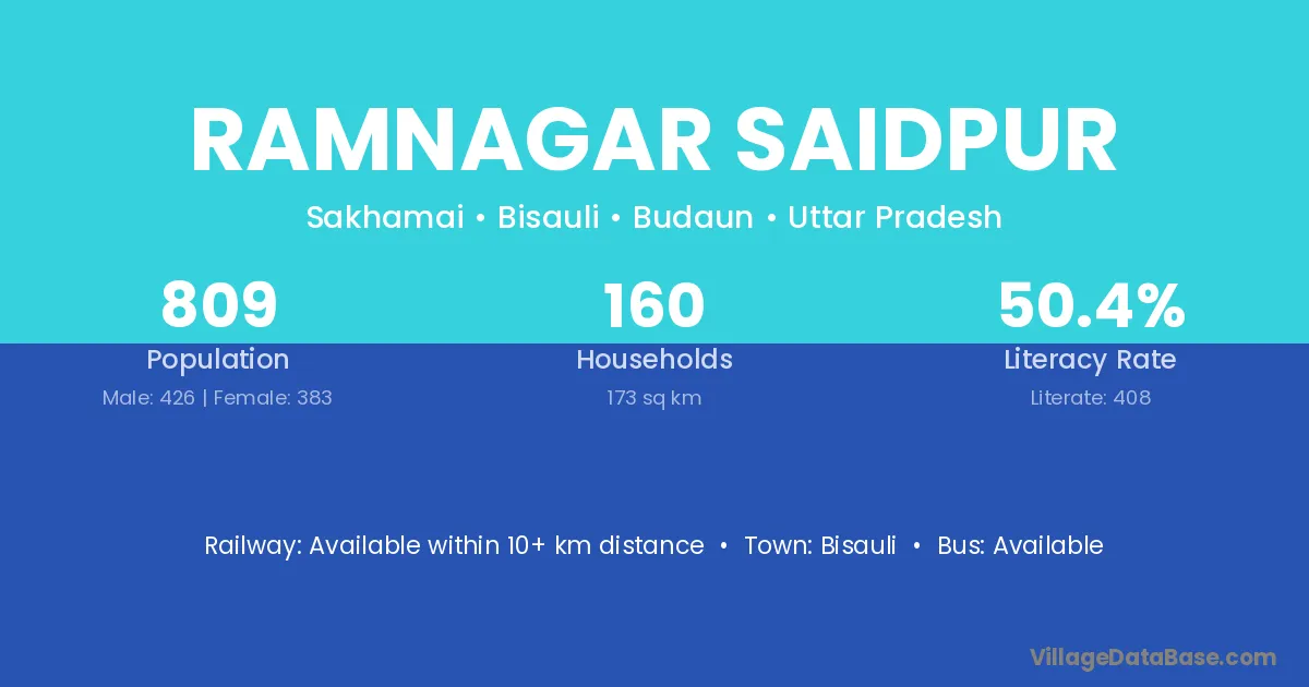Ramnagar Saidpur village has a total population of 809 people, of which 426 are males and 383 are females.