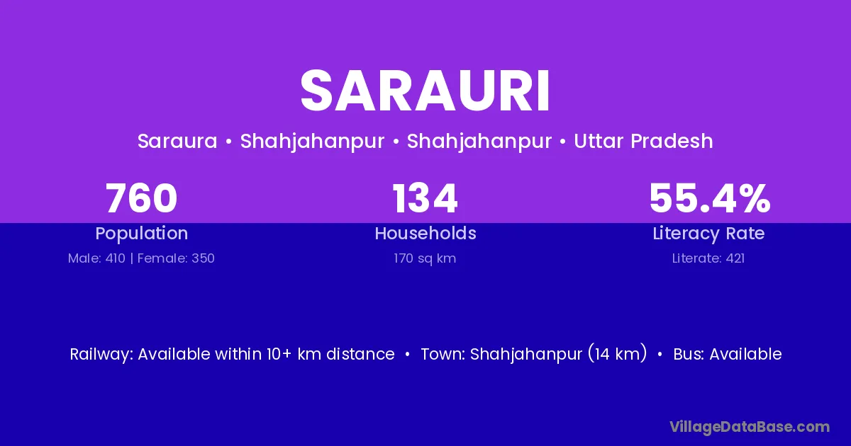 Sarauri village has a total population of 961 people, of which 522 are males and 439 are females.
