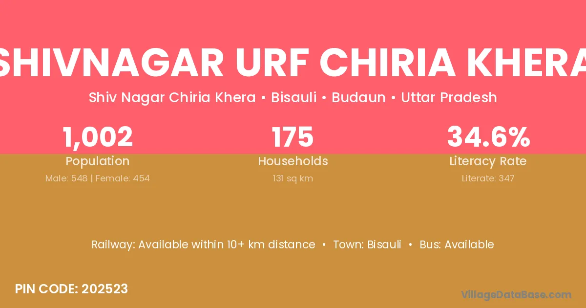 Shivnagar Urf Chiria Khera village has a total population of 1,002 people, of which 548 are males and 454 are females.