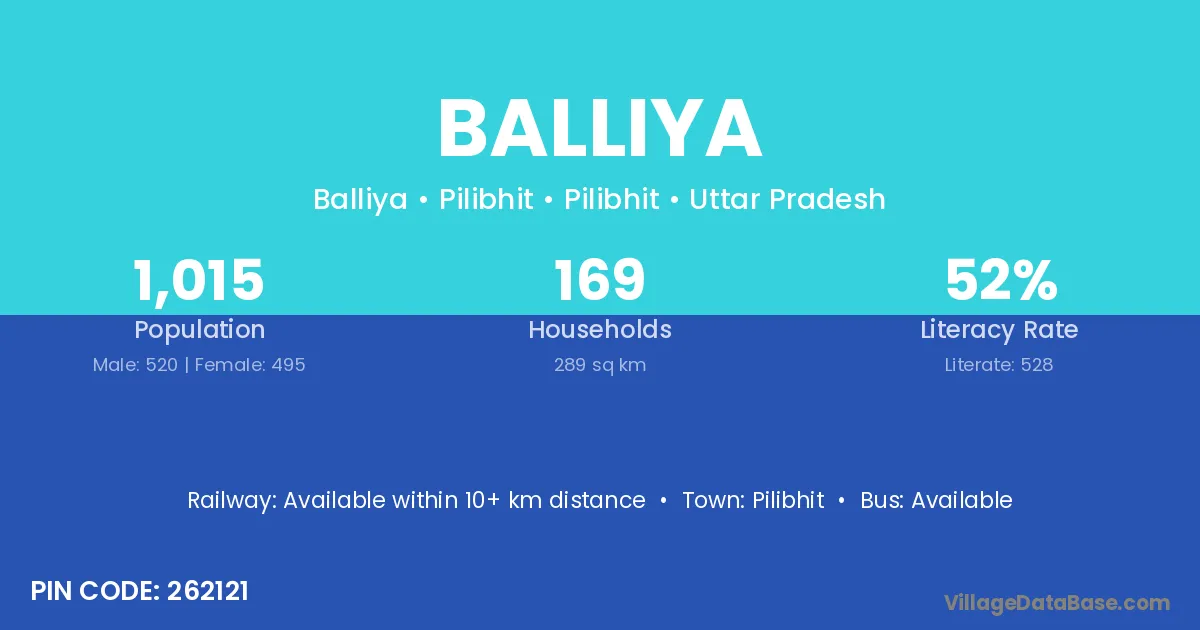 Budaun (20 km) is the nearest town to Balliya village for major economic activities and is located approximately 20 km away.
