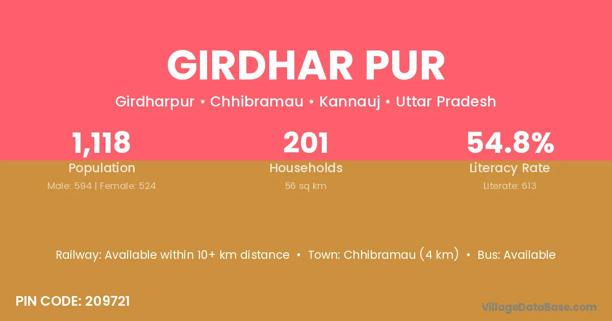 The literacy rate of Girdhar Pur village is 50.05%. Male literacy stands at 58.91% and female literacy at 39.45%.
