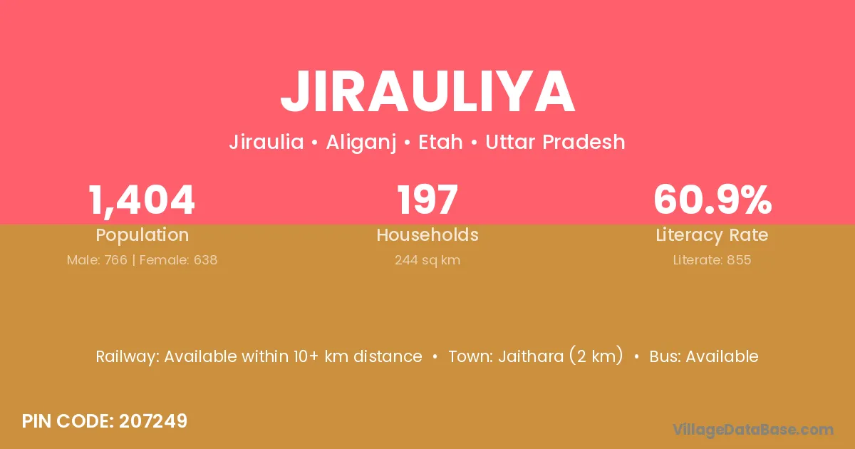 According to Census 2011 information, the village code of Jirauliya village is 243601.