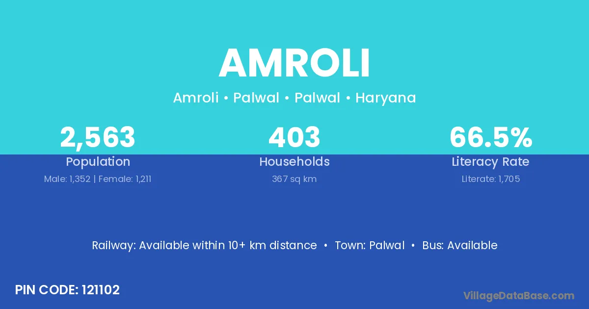 Amroli village has a total population of 2,153 people, of which 1,157 are males and 996 are females.