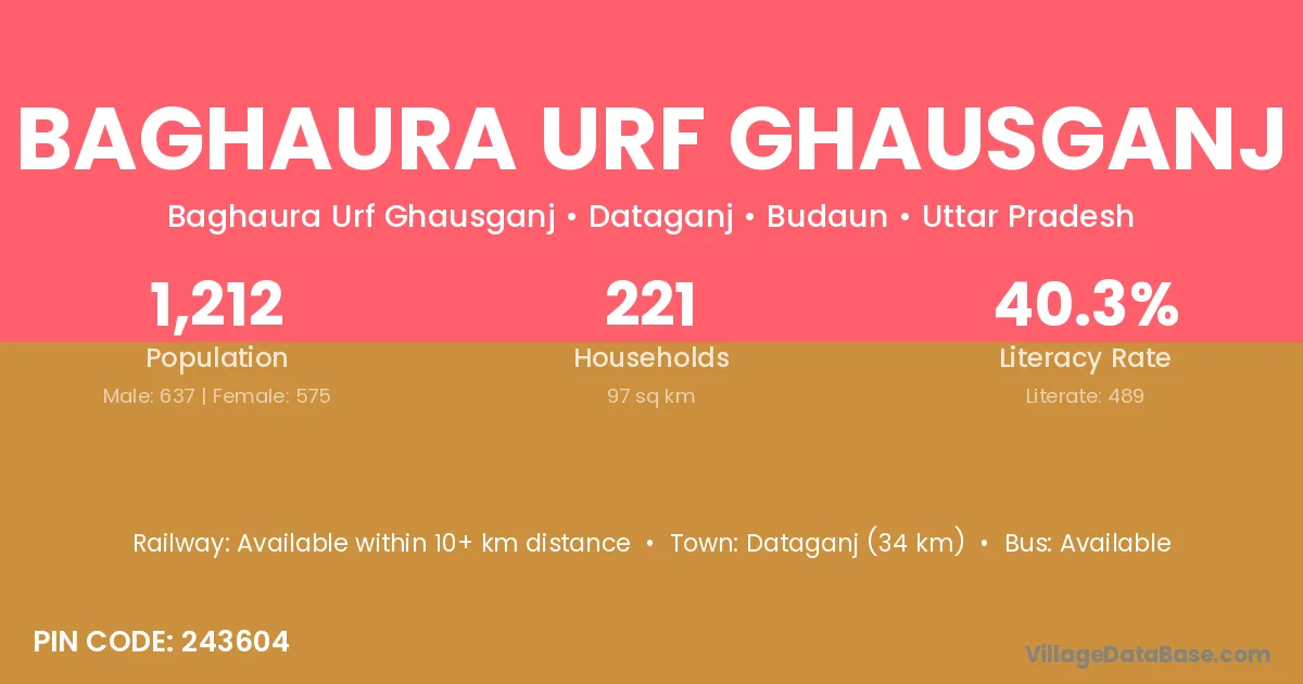 Dataganj (34 km) is the nearest town to Baghaura Urf Ghausganj village for major economic activities and is located approximately 34 km away.