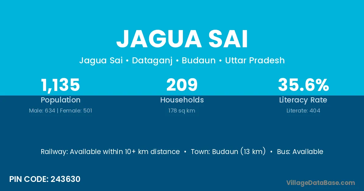 Budaun (13 km) is the nearest town to Jagua Sai village for major economic activities and is located approximately 13 km away.