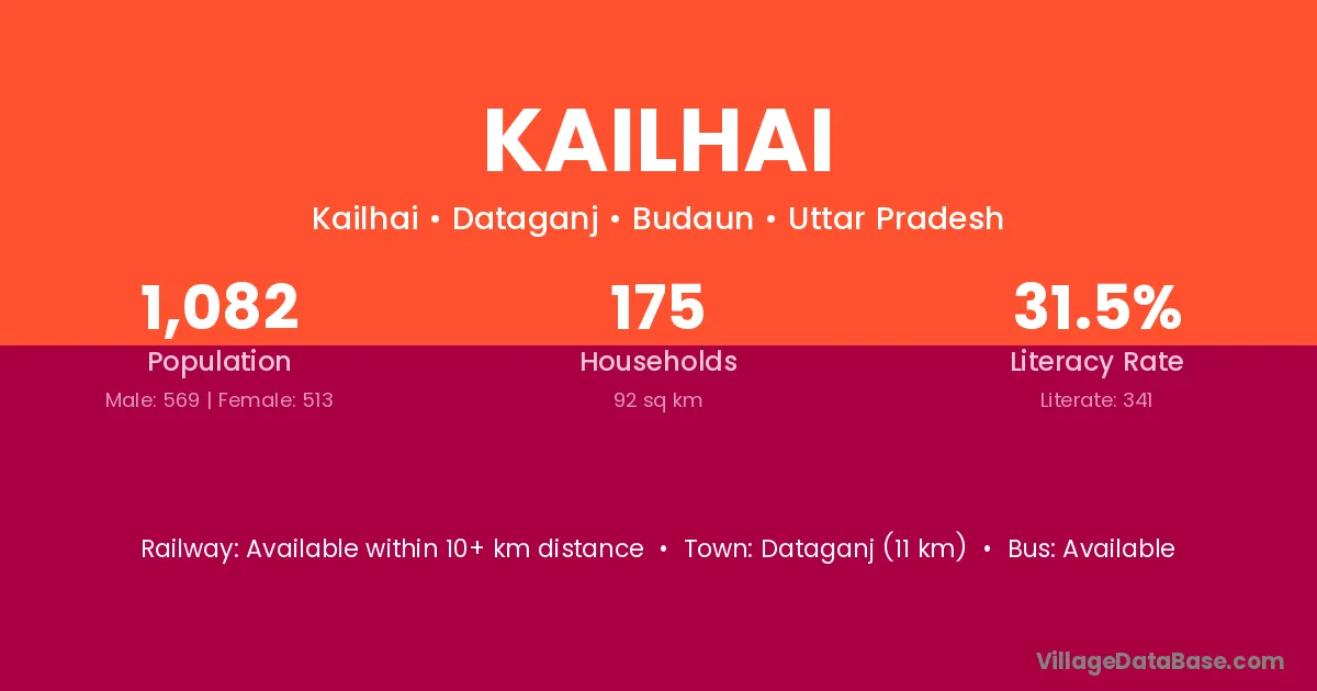Dataganj (11 km) is the nearest town to Kailhai village for major economic activities and is located approximately 11 km away.