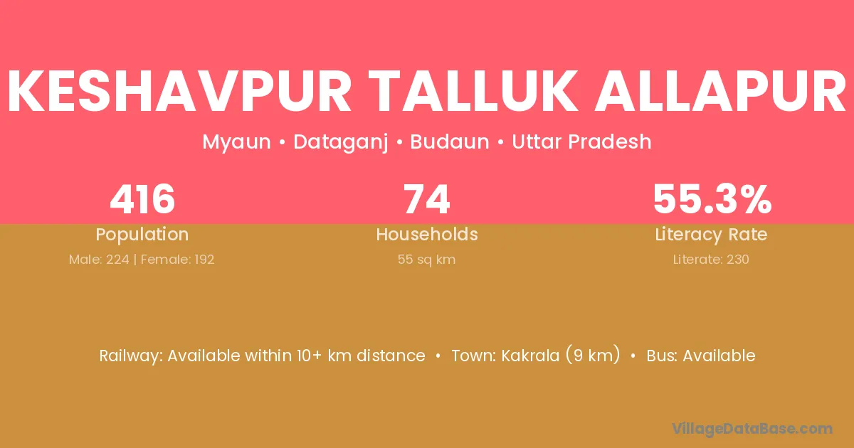 Keshavpur Talluk Allapur village has a total population of 416 people, of which 224 are males and 192 are females.