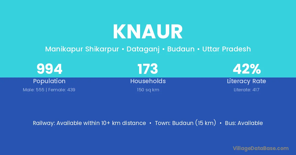 Budaun (15 km) is the nearest town to Knaur village for major economic activities and is located approximately 15 km away.