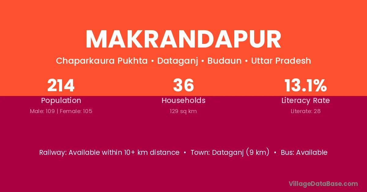 Dataganj (9 km) is the nearest town to Makrandapur village for major economic activities and is located approximately 9 km away.