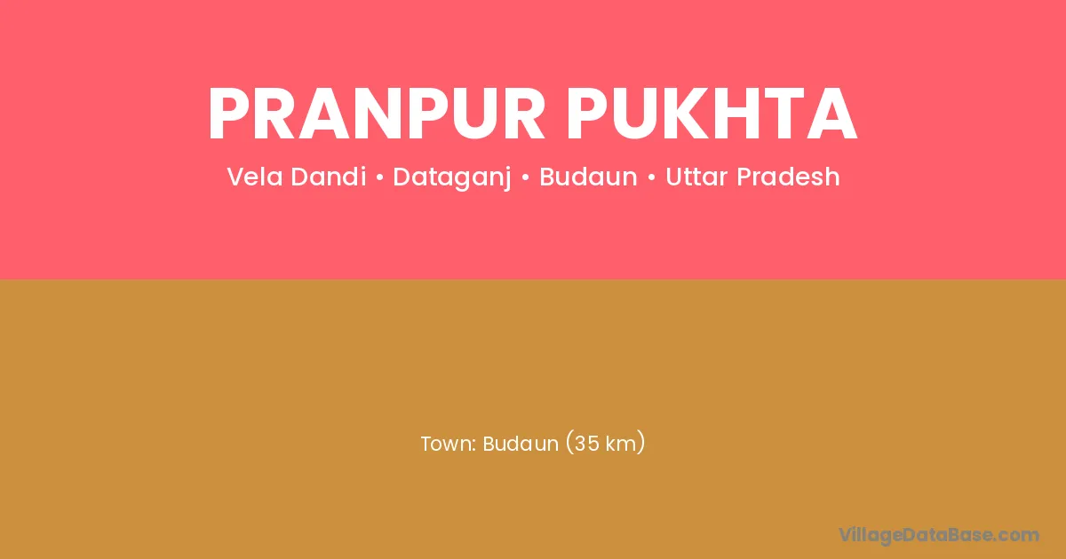 Budaun (35 km) is the nearest town to Pranpur Pukhta village for major economic activities and is located approximately 35 km away.