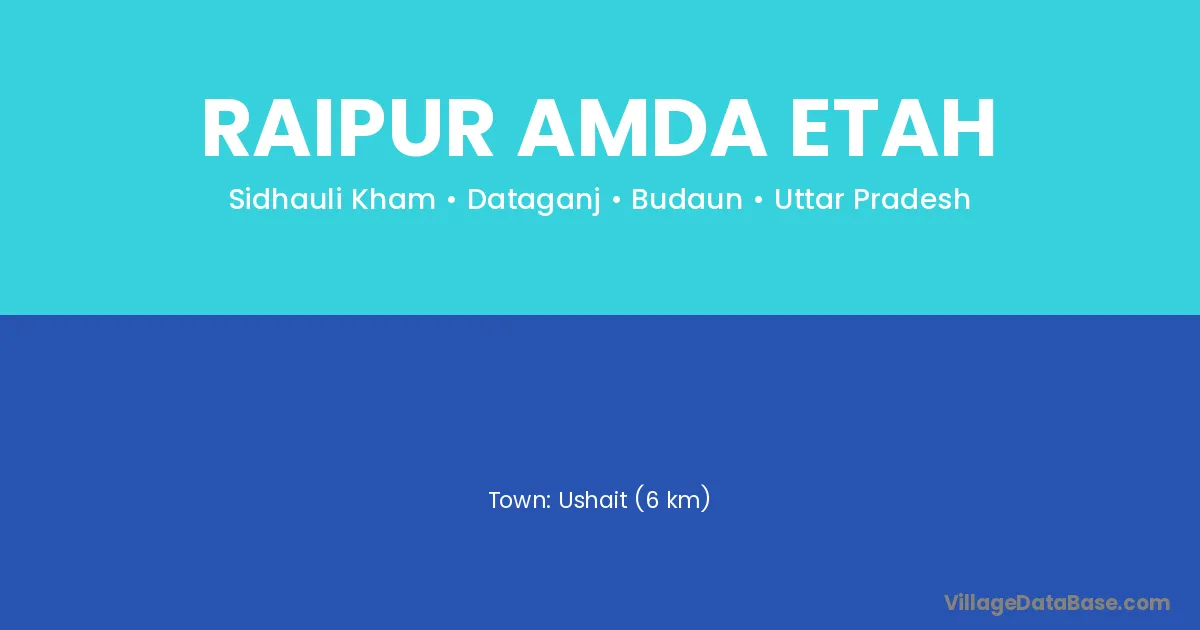 Ushait (6 km) is the nearest town to Raipur Amda Etah village for major economic activities and is located approximately 6 km away.