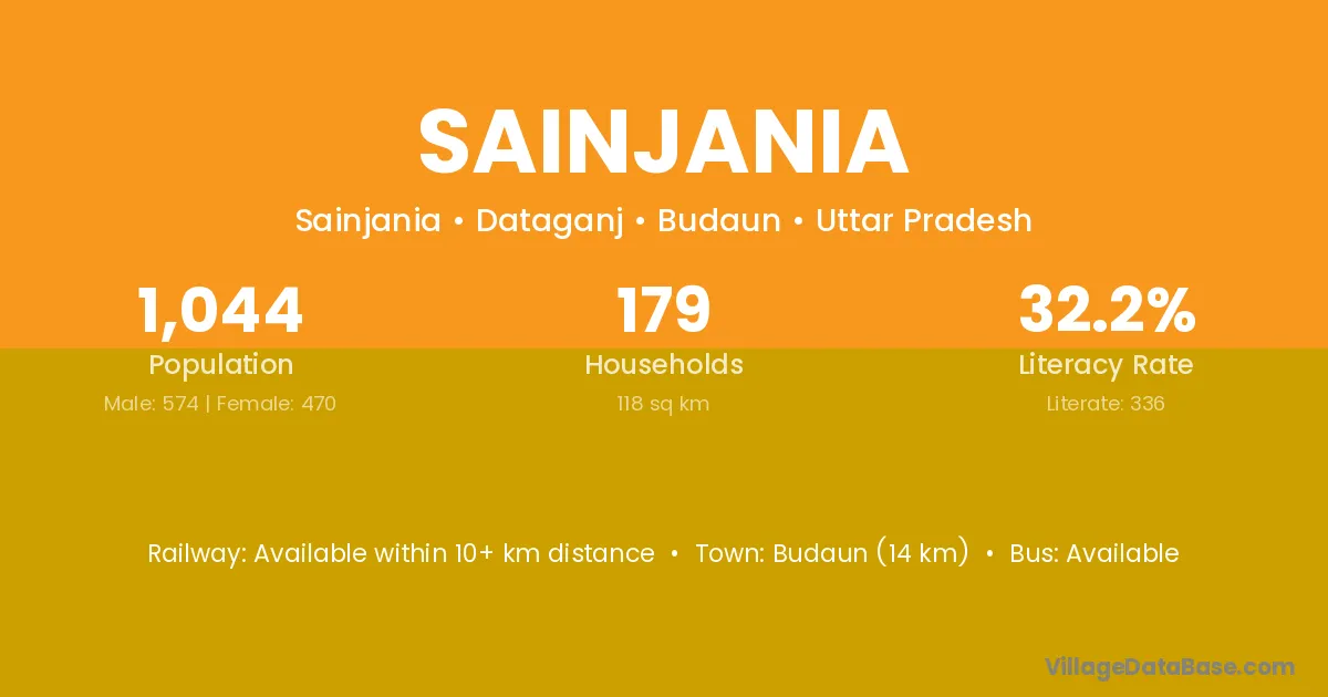 Budaun (14 km) is the nearest town to Sainjania village for major economic activities and is located approximately 14 km away.