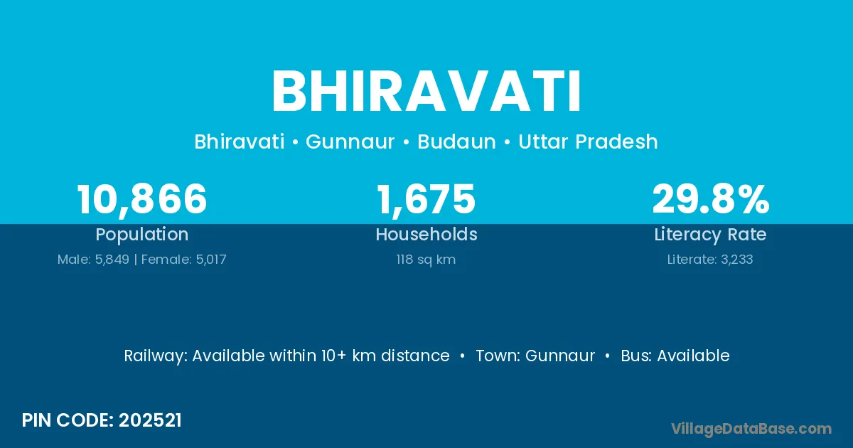 Bhiravati village is located in the Gunnaur Tehsil of the Budaun district in Uttar Pradesh .