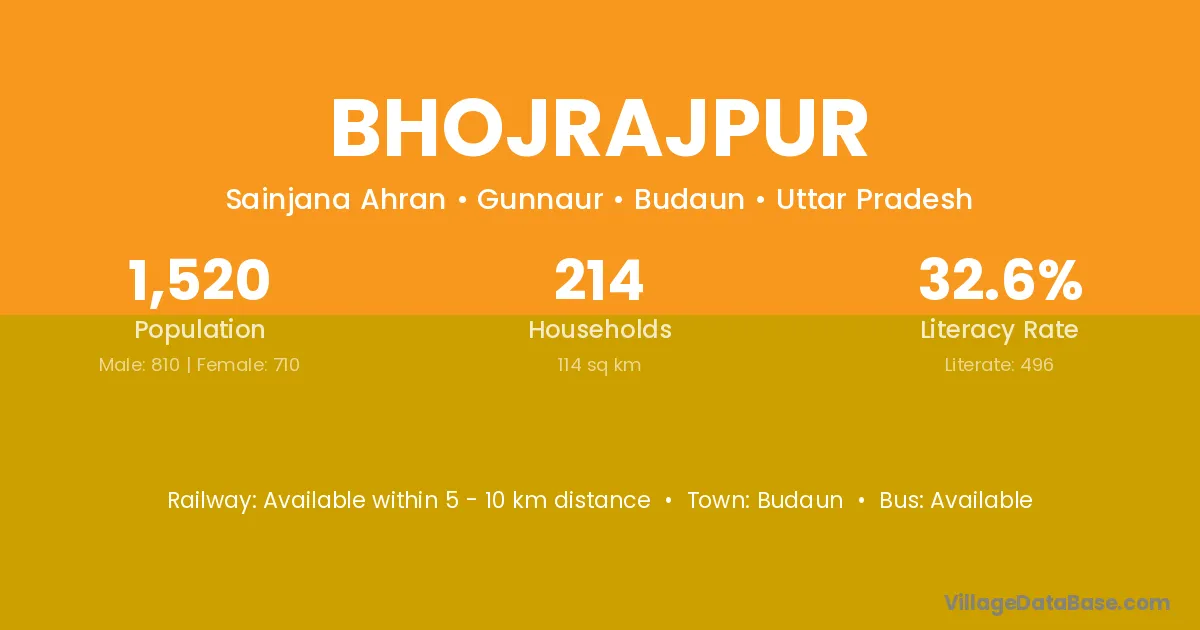 Budaun is the nearest town to Bhojrajpur village for major economic activities
