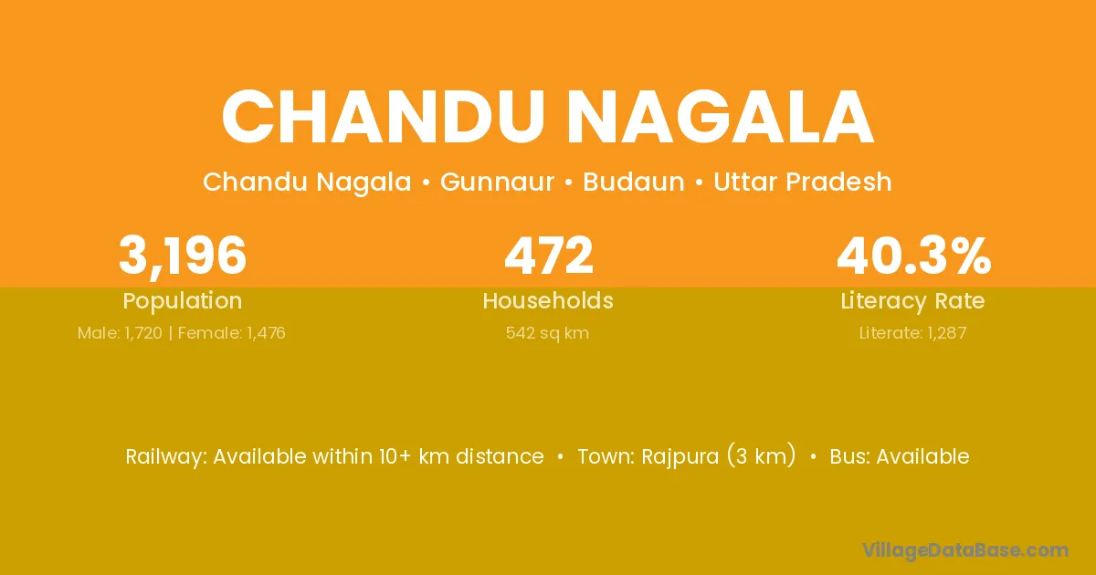 Rajpura (3 km) is the nearest town to Chandu Nagala village for major economic activities and is located approximately 3 km away.