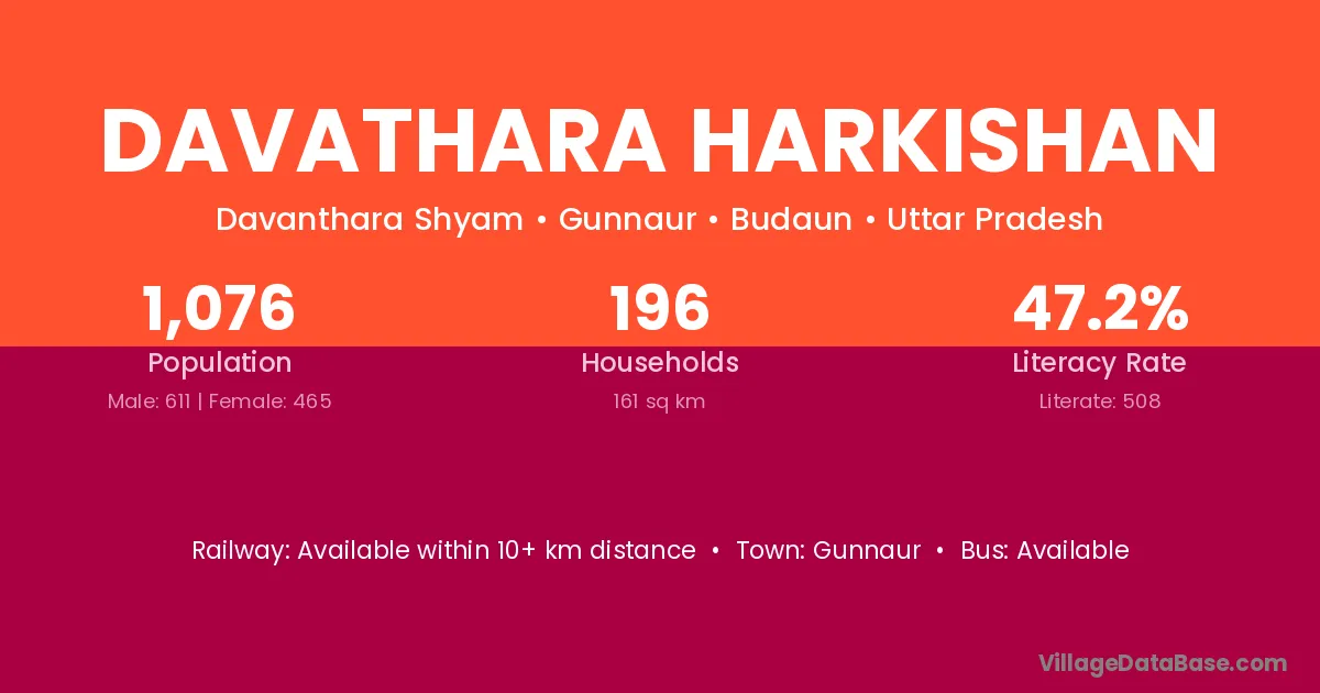 There are approximately 196 households in Davathara Harkishan village.