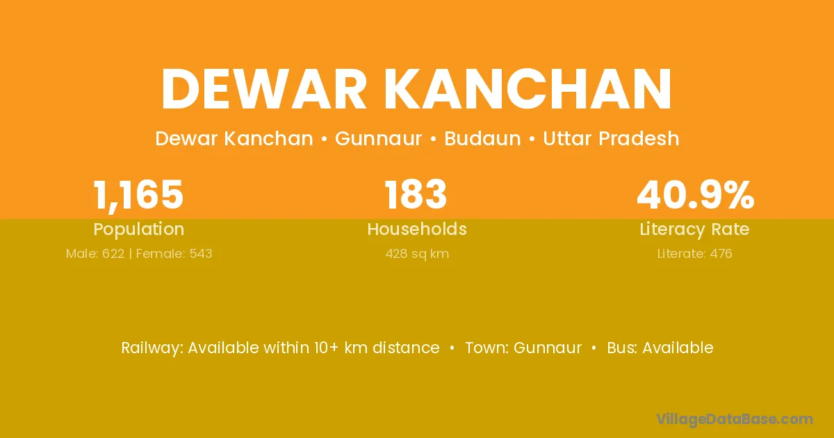 Dewar Kanchan village has a total population of 1,165 people, of which 622 are males and 543 are females.