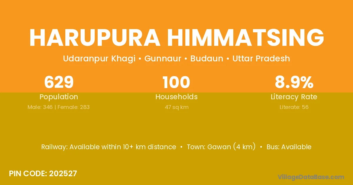Gawan (4 km) is the nearest town to Harupura Himmatsing village for major economic activities and is located approximately 4 km away.
