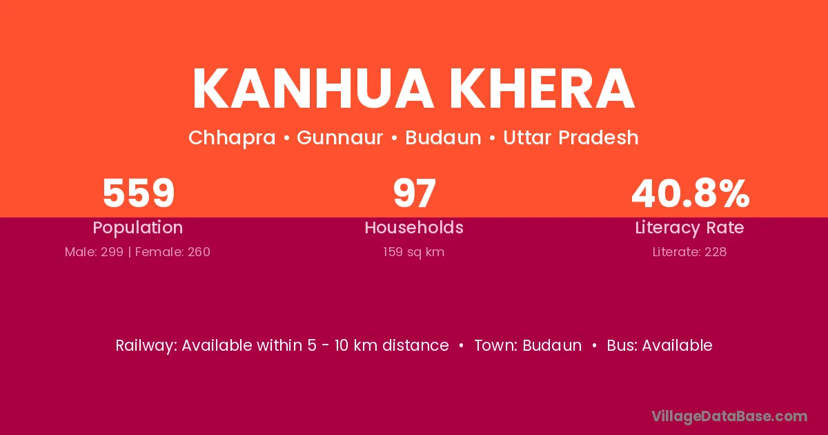 Budaun is the nearest town to Kanhua Khera village for major economic activities