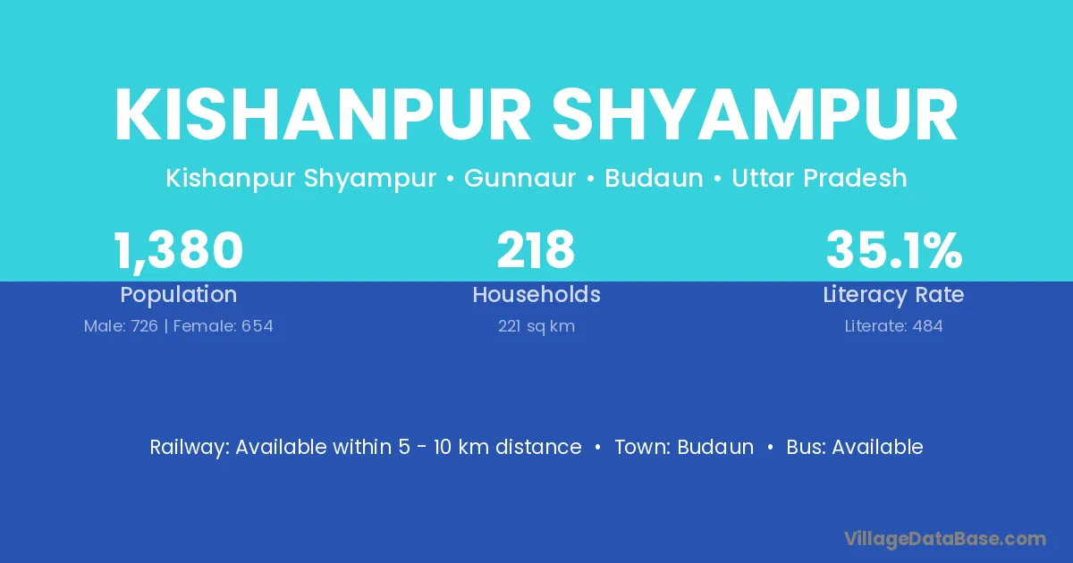 Kishanpur Shyampur village has a total population of 1,380 people, of which 726 are males and 654 are females.