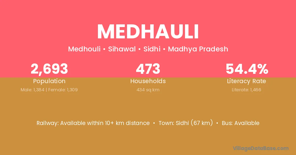 Medhauli village has a total population of 2,711 people, of which 1,527 are males and 1,184 are females.
