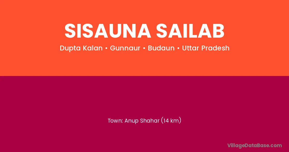 Anup Shahar (14 km) is the nearest town to Sisauna Sailab village for major economic activities and is located approximately 14 km away.