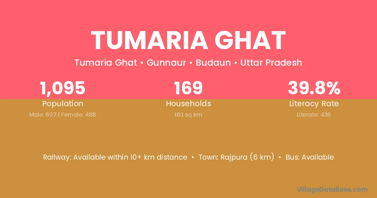 Tumaria Ghat village has a total population of 1,095 people, of which 607 are males and 488 are females.