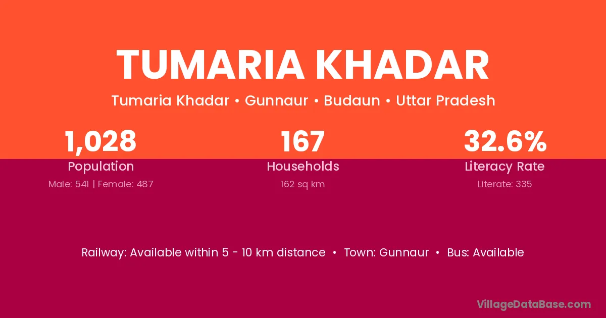 Tumaria Khadar village has a total population of 1,028 people, of which 541 are males and 487 are females.