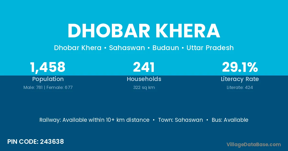 Sahaswan is the nearest town to Dhobar Khera village for major economic activities
