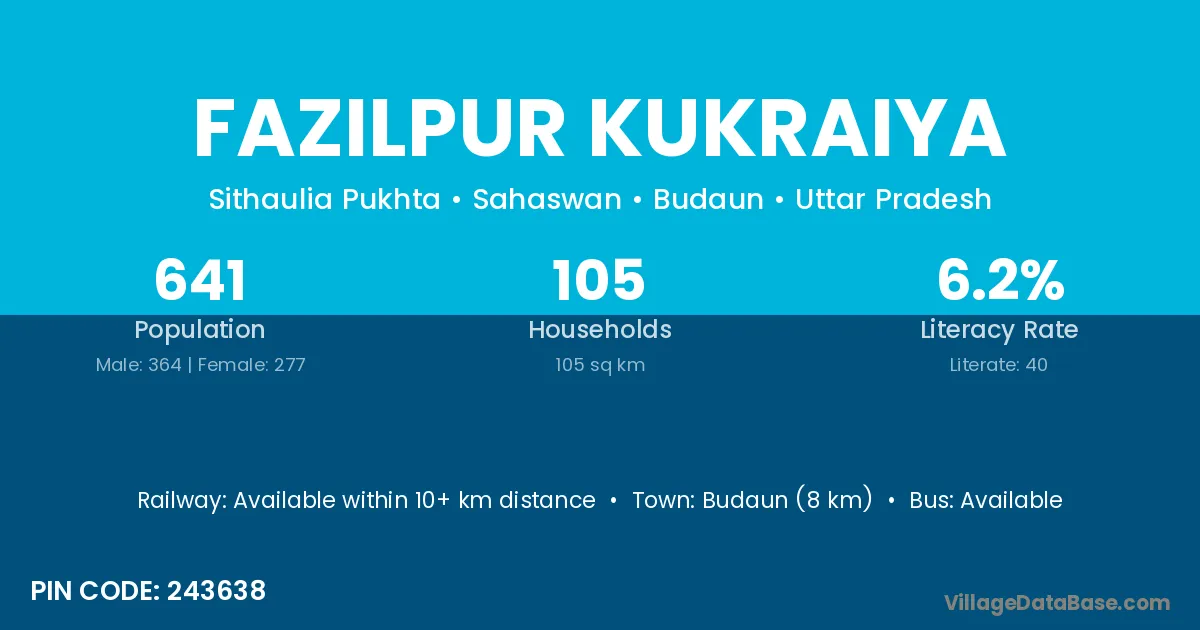 Budaun (8 km) is the nearest town to Fazilpur Kukraiya village for major economic activities and is located approximately 8 km away.