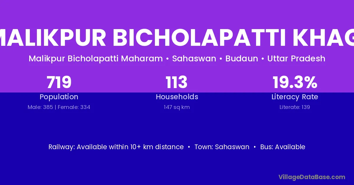 Sahaswan is the nearest town to Malikpur Bicholapatti Khagi village for major economic activities