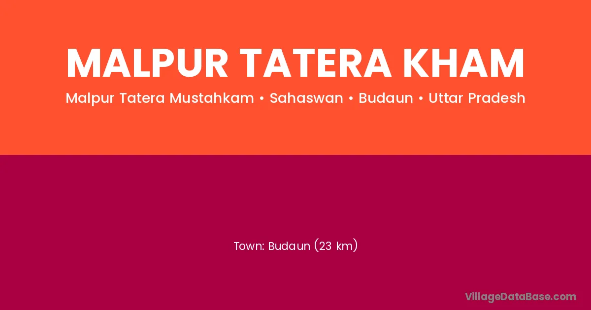 Budaun (23 km) is the nearest town to Malpur Tatera Kham village for major economic activities and is located approximately 23 km away.
