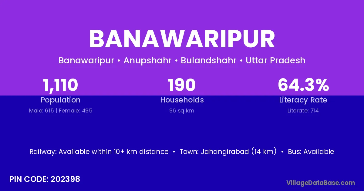 Jahangirabad (14 km) is the nearest town to Banawaripur village for major economic activities and is located approximately 14 km away.